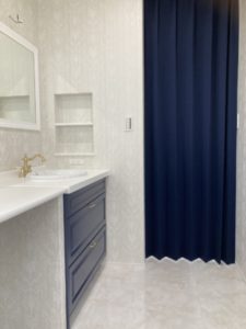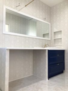 洗面はネイビーがアクセント